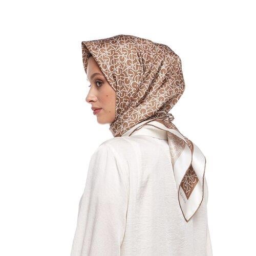 İpekevi Typo Monogram Sütlü Kahve Tivil İpek Eşarp 1119 - KAHVE