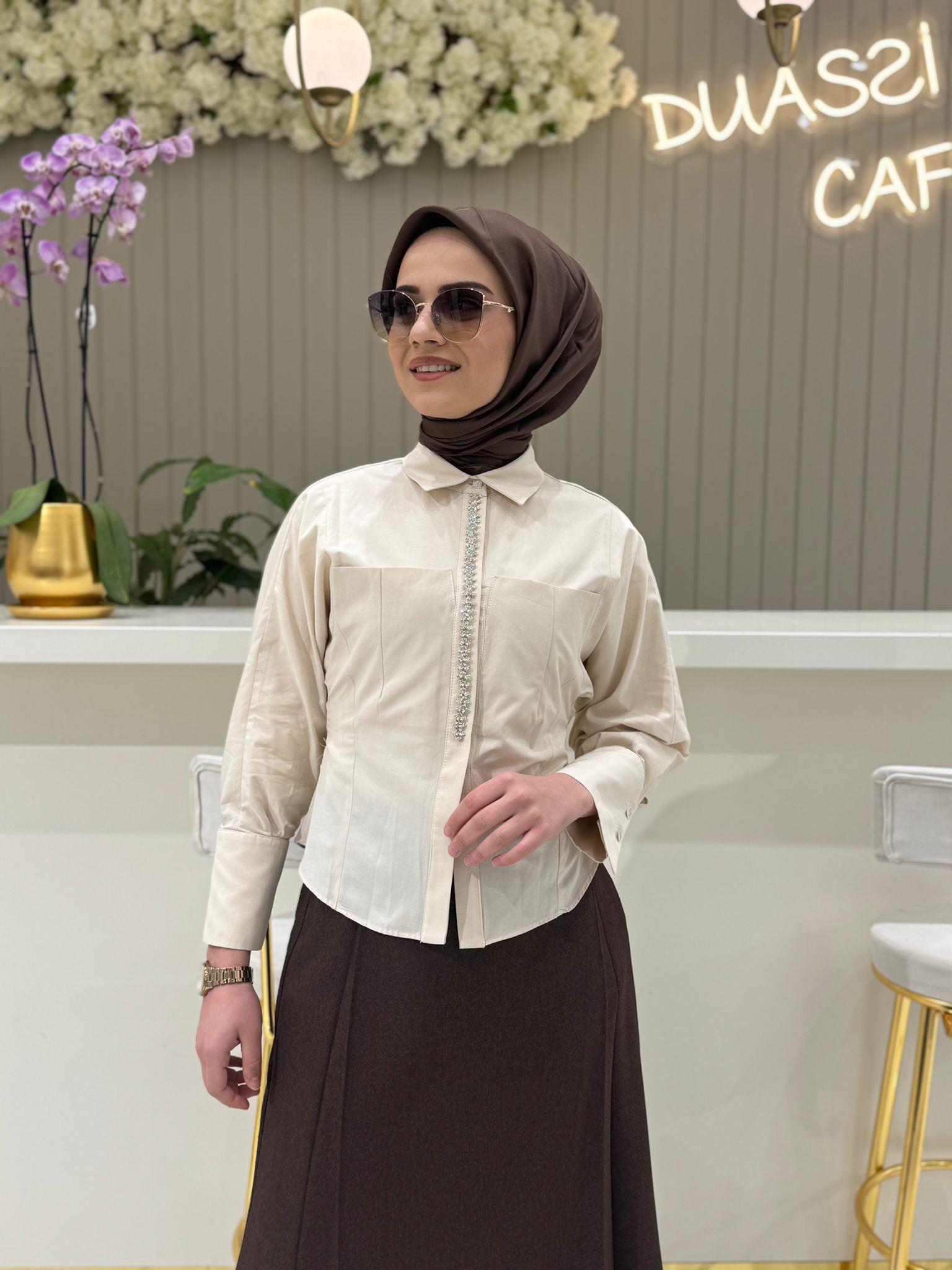 My312 Önü Taşlı Gömlek 8607 - BEJ