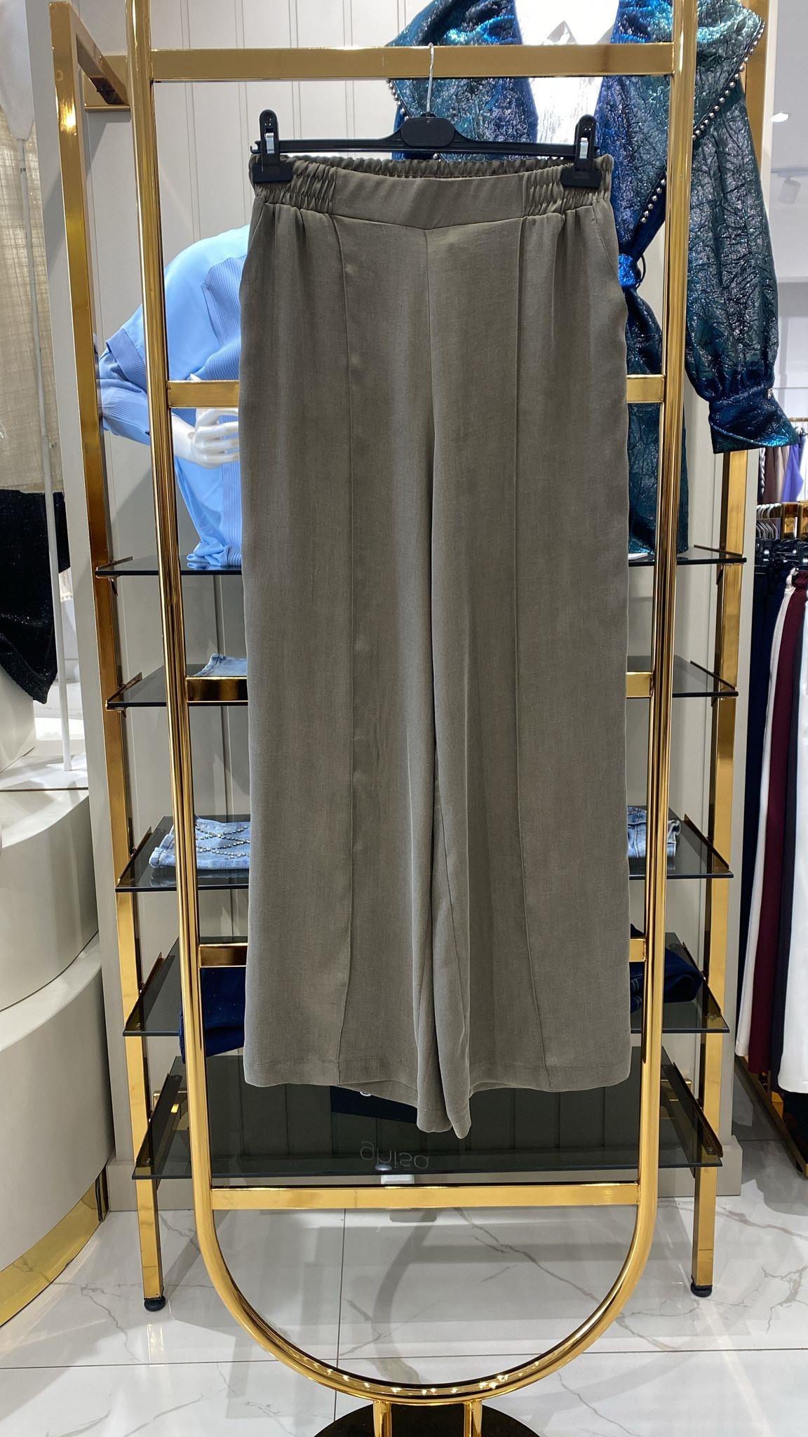 Sentez İpek Cupra Geniş Paça Pantolon 5556-H - HAKİ
