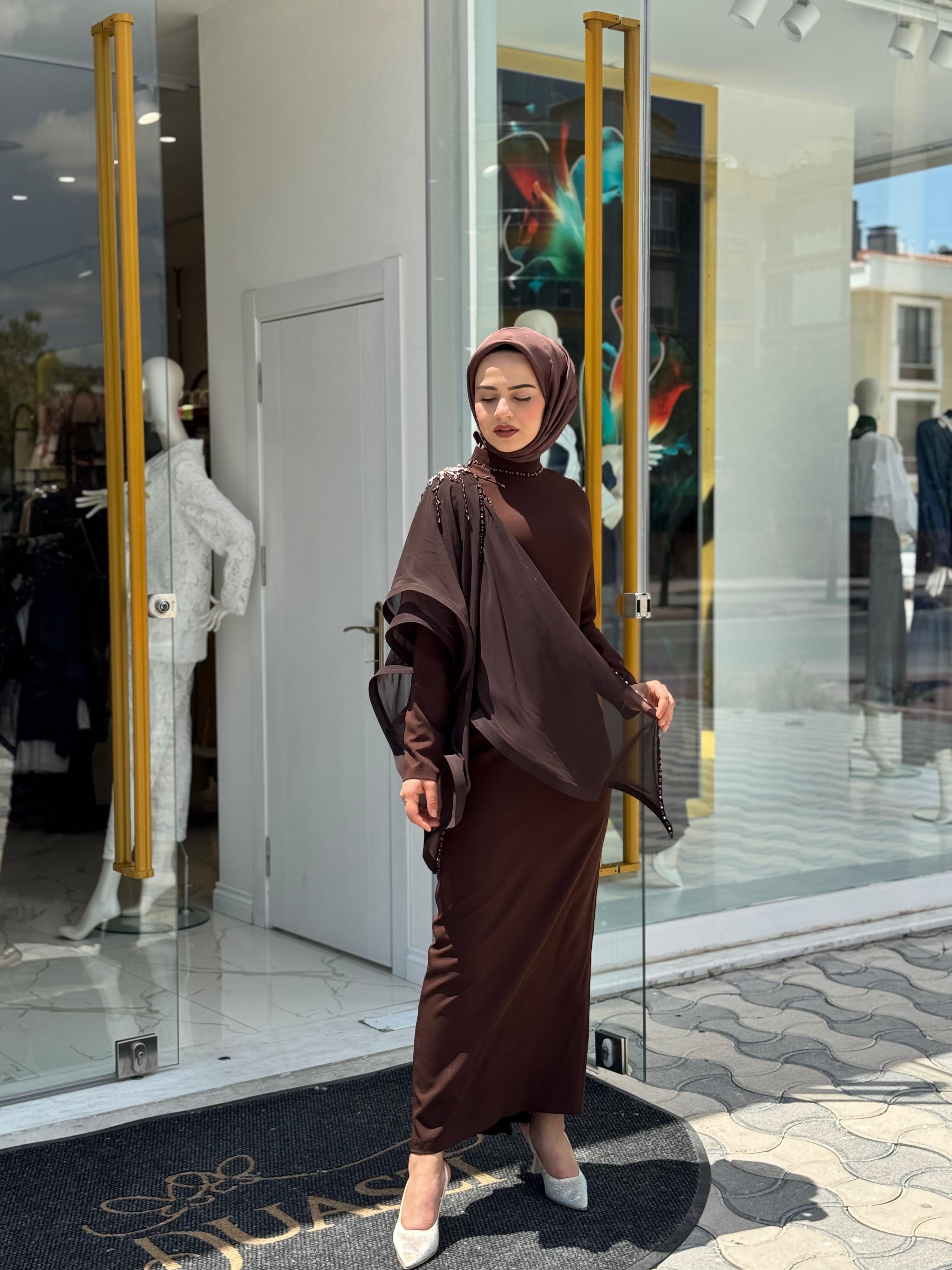 White Corner 3253 Elbise  - KAHVE